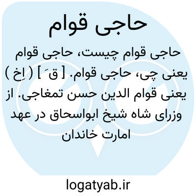 حاجی قوام. [ ق َ ] ( اِخ ) یعنی قوام الدین حسن تمغاجی. از وزرای شاه شیخ ابواسحاق در عهد امارت خاندان اینجو در فارس وی محصل مالیات دیوانی بود و عایدات فارس را روزی ده هزار درهم در ضمان خود گرفته بود. در عهد شاه شیخ ابواسحاق حاجی تقرب تمام یافت و ندیم و مشاور شاه گردید. در محاصره شیراز از طرف امیر مبارز که شش ماه طول کشید، روزی شاه شیخ از وی پرسید مهم ما و مظفر بکجا خواهد رسید حاجی قوام گفت تا من زنده ام انهدام بجلال مقام تو راه نخواهد یافت ولی درهمان اوان یعنی روز ششم ربیعالاول سال 754 حاجی فوت کرد. مؤلف حبیب السیر آرد که وی جهت مبالغه در اشاعه خیر و احسان انگشت نمای مرد و زن بود. وی یکی از ممدوحین خواجه حافظ است و در غزلی که مطلع آن بیت ذیل است: