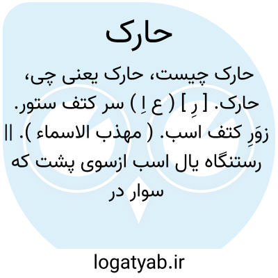حارک. [ رِ ] ( ع اِ ) سر کتف ستور. زوَرِ کتف اسب. ( مهذب الاسماء ). || رستنگاه یال اسب ازسوی پشت که سوار در دست گیرد. || استخوان میان دوش. استخوان دو دوش. استخوانی بلند از دو جانب دوش. || منتهای ما بین دو دوش. ج، حوارک. || در عبارت ذیل معنی حارک اگر مصحف نباشد بتحقیق بر ما معلوم نیست: اما صواع و صاع و سقایة اشباهند و مفسران در او خلاف کردند بعضی گفتند شکل سقراقی بود که او ( یوسف ) بدان آب خوردی زرین. این قول ابن زید است، و گفتند سیمین بود بر شکل حارکی بود سیمین. ( تفسیر ابوالفتوح چ 1 ج 3 ص 148 ).