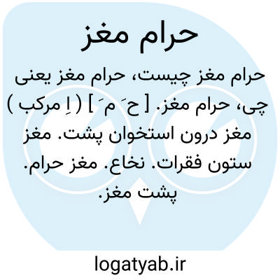 حرام مغز. [ ح َ م َ ] ( اِ مرکب ) مغز درون استخوان پشت. مغز ستون فقرات. نخاع. مغز حرام. پشت مغز. حرامغز. مهره گردن. خیطالرقبة.