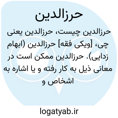 [ویکی فقه] حرزالدین (ابهام زدایی). حرزالدین ممکن است در معانی ذیل به کار رفته و یا اشاره به اشخاص و شخصیت های ذیل باشد: • آل حرزالدین، آل حِرزُالدین، از خاندان های علمی نجف در قرن دوازدهم تا چهاردهم • احمد بن علی حرزالدین نجفی، احمد حرزالدین فرزند علی از افراد مشهور خاندان حرزالدین• حسن بن علی حرزالدین نجفی، حسن حرزالدین فرزند علی از افراد مشهور خاندان حرزالدین• عبدالحسن بن احمد حرزالدین نجفی، عبدالحسن حرزالدین فرزند احمد از افراد مشهور آل حرزالدین• عبدالحسین بن علی حرزالدین نجفی، عبدالحسین حرزالدین فرزند علی از افراد مشهور خاندان حرزالدین• عبدالکریم بن محمد حرزالدین نجفی، عبدالکریم حرزالدین فرزند محمد حرزالدین از افراد مشهور خاندان حرزالدین• علی بن عبدالله حرزالدین نجفی، علی حرزالدین فرزند عبدالله از افراد مشهور خاندان آل حرزالدین• کاظم بن علی حرزالدین نجفی، کاظم حرزالدین فرزند علی، ادیب و از افراد مشهور خاندان حرزالدین• محمد بن عبدالله حرزالدین نجفی، محمد حرزالدین فرزند عبدالله از افراد مشهور خاندان حرزالدین• محمد بن علی حرزالدین نجفی، محمد حرزالدین نجفی (۱۲۷۳ - ۱۳۶۵قمری) عالم بزرگ از خاندان معروف حرزالدین• محمدحسین بن علی حرزالدین نجفی، محمدحسین حرزالدین فرزند علی از افراد شاخص خاندان حرزالدین• مهدی بن احمد حرزالدین نجفی، مهدی حرزالدین فرزند احمد از افراد مشهور آل حرزالدین• هیکل بن عبدالله حرزالدین نجفی، هیکل حرزالدین فرزند عبدالله از افراد مشهور آل حرزالدین