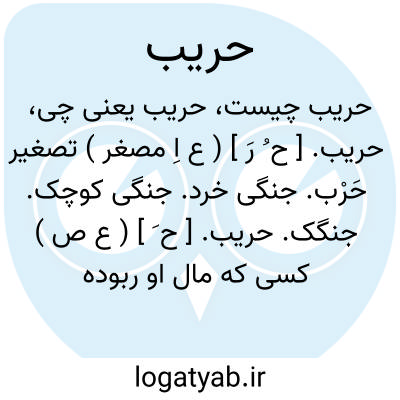 حریب. [ ح َ ] ( ع ص ) کسی که مال او ربوده باشند. مال گرفته شده و بی چیزمانده. محروب. ج، حَرْبی ̍، حُرَباء.