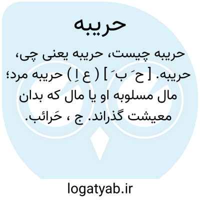 حریبه. [ ح َ ب َ ] ( ع اِ ) حریبه مرد؛ مال مسلوبه او یا مال که بدان معیشت گذراند. ج، حَرائب.