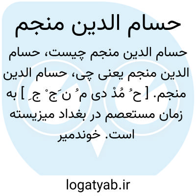 حسام الدین منجم. [ ح ُ مُدْ دی م ُ ن َج ْ ج ِ ] به زمان مستعصم در بغداد میزیسته است. خوندمیر گوید: در آن ایام که ایلخان ( هلاکو ) به قتل مستعصم فرمان داد. حسام الدین به ملازمت پادشاه رفته گفت اگر خلیفه کشته گردد، عالم سیاه و تاریک شود و علامت قیامت مشاهده افتد و امثال این کلمات مهابت آمیز چندان عرض نمود که هلاکوخان در کشتن خلیفه تردد پیدا کرده در آن باب با خواجه نصیرالدین طوسی مشورت فرمود. خواجه گفت که زکریاءپیغمبر و یحیی معصوم ( س ) را بقتل آوردند، هیچیک از این حالات به وقوع نپیوست، و اگر حسام الدین دعوی می نماید که این احوال بر خونریزی آل عباس مترتب میشود غلط است، زیرا که چندین تن از ایشان پیش از این کشته اند، نه آفتاب منکسف شده و نه قمر منخسف. آنگاه ایلخان از حسام الدین مچلکاء ستاند که بعد از قتل خلیفه تا مدتی معین اگر آنچه گفته به ظهور نپیوندد او را بکشدو چون آن مدت انقضا یافت، در شب پنجشنبه هشتم محرم سنه احدی و ستین و ستمائة، حسام الدین به تیغ مغولان پرخشم و کین کشته شد. ( حبیب السیر چ خیام ج 3 ص 107 ).