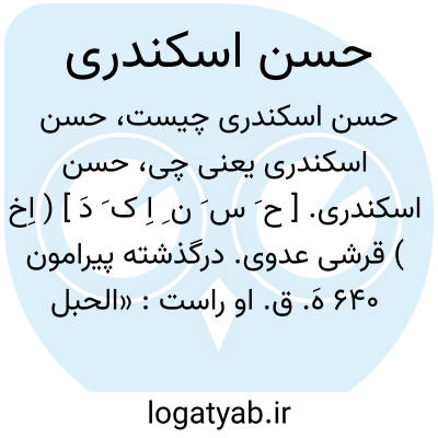 حسن اسکندری. [ ح َ س َ ن ِ اِ ک َ دَ ] ( اِخ ) قرشی عدوی. درگذشته پیرامون 640 هَ. ق. او راست: «الحبل البابلیة للخزانة الکاملیة» برای ملا کامل ایوبی و جز آن. ( هدیة العارفین ج 1 صص 280 - 281 ).