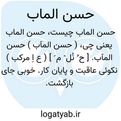 ( حسن المآب ) حسن المآب. [ ح ُ نُل ْ م َ ] ( ع اِ مرکب ) نکوئی عاقبت و پایان کار. خوبی جای بازگشت. نیکوئی بازگشت و قرب الهی. ( غیاث ) ( آنندراج ):