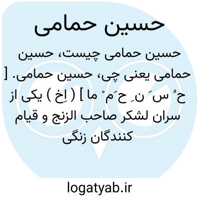 حسین حمامی. [ ح ُ س َ ن ِ ح َم ْ ما ] ( اِخ ) یکی از سران لشکر صاحب الزنج و قیام کنندگان زنگی است. رجوع به صاحب الزنج و ابن اثیر چ 1302 هَ. ق. ج 7 ص 84 شود.