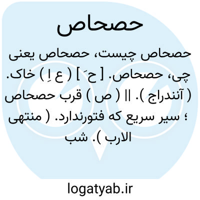 حصحاص. [ ح َ ] ( ع اِ ) خاک. ( آنندراج ). || ( ص ) قرب حصحاص؛ سیر سریع که فتورندارد. ( منتهی الارب ). شب روی سریع. ( ناظم الاطباء ).