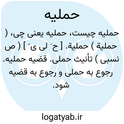 ( حملیة ) حملیة. [ ح َ لی ی َ ] ( ص نسبی ) تأنیث حملی. قضیه حملیه. رجوع به حملی و رجوع به قضیه شود.