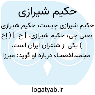حکیم شیرازی. [ ح َ ] ( اِخ ) یکی از شاعران ایران است. مجمعالفصحاء درباره او گوید: میرزا محمود، خلف الصدق مجموعه کمال میرزا کوچک وصال و پس از میرزا احمد وقار، اکبر اولاد میرزای مرحوم بوده و بعد از رحلت والد ماجد از شیراز به اتفاق برادر اکبر خود بمسافرت هندوستان و سیاحت آن بلاد رغبت نموده و در سنه 1266 هَ. ق. بولایات هند رسیده و در بندر بمبئی توقف گزیده بعد از سالی دو هم به اتفاق وقار بوطن مألوف رجوع کرده در سال 1268 هَ. ق. وفات یافت و سی ونه سال از عمرش گذشته بود و در کمالات حظی وافر داشت و در حکمت طبیعی قدرتی وافی. خط نستعلیق را بغایت خوب می نگاشت و اخلاقی حمیده داشت. بروزگار دولت شاهنشاه مغفور محمدشاه به طهران آمد مجدداً صحبتش روزی شد و مراجعت کرد. از اوست: