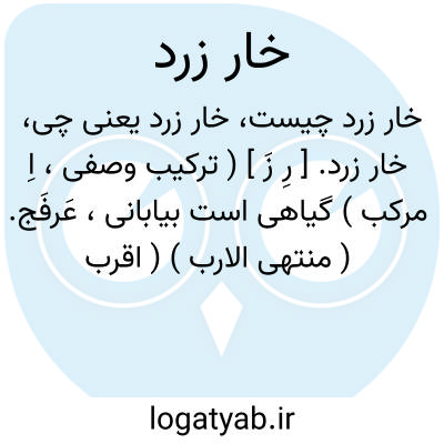 خار زرد. [ رِ زَ ] ( ترکیب وصفی، اِ مرکب ) گیاهی است بیابانی، عَرفَج. ( منتهی الارب ) ( اقرب الموارد ) ( المنجد ). رجوع به عرفج شود.