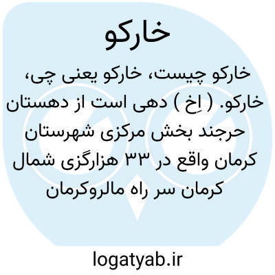 خارکو. ( اِخ ) دهی است از دهستان حرجند بخش مرکزی شهرستان کرمان واقع در 33 هزارگزی شمال کرمان سر راه مالروکرمان به حرجند محلی است کوهستانی و سردسیر دارای 52 تن سکنه و مذهبشان شیعه و زبانشان فارسی است آب آنجا از قنات و محصولات غلات و حبوبات و شغل اهالی زراعت و راه مالرو است. ( از فرهنگ جغرافیائی ایران ج 8 ).