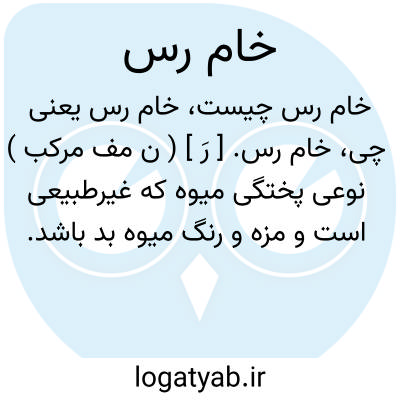 خام رس. [ رَ ] ( ن مف مرکب ) نوعی پختگی میوه که غیرطبیعی است و مزه و رنگ میوه بد باشد.