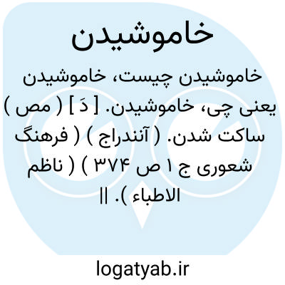 خاموشیدن. [ دَ ] ( مص ) ساکت شدن. ( آنندراج ) ( فرهنگ شعوری ج 1 ص 374 ) ( ناظم الاطباء ). || شرمگین بودن. || پرچین شدن. || مانده و خسته شدن. || تسلی دادن. ( ناظم الاطباء ).