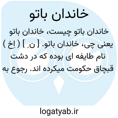 خاندان باتو. [ ن ِ ] ( اِخ ) نام طایفه ای بوده که در دشت قبچاق حکومت میکرده اند. رجوع به «خانان سیراردو» و «خانان باتو» شود.