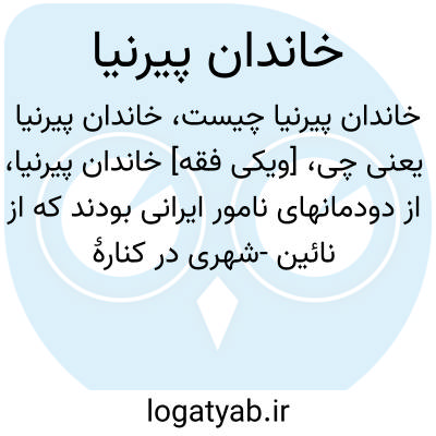 [ویکی فقه] خاندان پیرنیا، از دودمانهای نامور ایرانی بودند که از نائین -شهری در کنارۀ کویر مرکزی ایران- برخاستند و اعضای آن از وزیران و سیاستمداران و مورخان، و در برخی زمینه ها از دانشمندان طراز اول بودند.