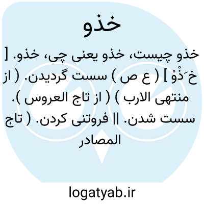 خذو. [ خ َذْوْ ] ( ع ص ) سست گردیدن. ( از منتهی الارب ) ( از تاج العروس ). سست شدن. || فروتنی کردن. ( تاج المصادر بیهقی ). || آگنده شدن گوشت و پر گردیدن آن. ( منتهی الارب ).