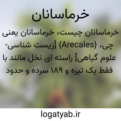 {Arecales} [زیست شناسی- علوم گیاهی] راسته ای نخل مانند با فقط یک تیره و 189 سرده و حدود 2400 گونه که برخی از آنها اهمیت اقتصادی دارند؛ با اینکه همۀ گونه های خرماسانان به جز تعداد کمی، محدود به مناطق گرمسیری و نیمه گرمسیری می شوند، ازلحاظ جغرافیایی و شکل ظاهری ب...