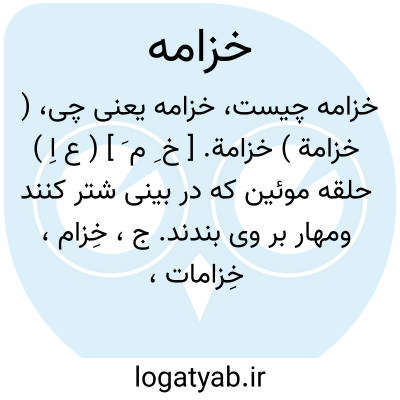 ( خزامة ) خزامة. [ خ ِ م َ ] ( ع اِ ) حلقه موئین که در بینی شتر کنند ومهار بر وی بندند. ج، خِزام، خِزامات، خَزائم. || تسمه ای که بدان نعلین را به روی پا بندند. ( از منتهی الارب ) ( از لسان العرب ) ( از تاج العروس ).