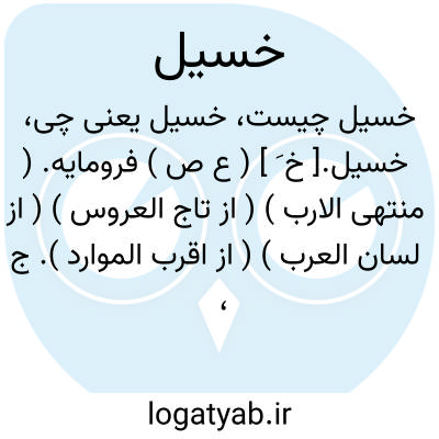 خسیل.[ خ َ ] ( ع ص ) فرومایه. ( منتهی الارب ) ( از تاج العروس ) ( از لسان العرب ) ( از اقرب الموارد ). ج، خَسائل خسال. || دون. ناکس از قوم. ( منتهی الارب ) ( ازتاج العروس ) ( از اقرب الموارد ). ج، خَسائل، خسال.