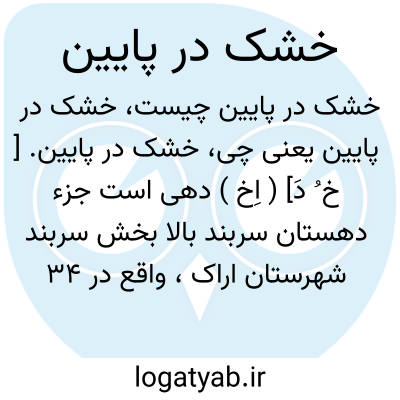 خشک در پایین. [ خ ُ دَ] ( اِخ ) دهی است جزء دهستان سربند بالا بخش سربند شهرستان اراک، واقع در 34 هزارگزی خاوری آستانه و 4 هزارگزی باختر راه قدیم بروجرد به اراک. محصول آن غلات و بن شن و پنبه و شغل اهالی زراعت و گله داری و از صنایع دستی قالیچه بافی و راه مالرو است. باین ده خشکدر صفی نیز می گویند. ( از فرهنگ جغرافیائی ایران ج 2 ).