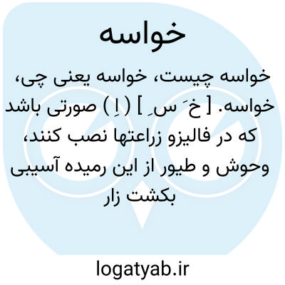 خواسه. [ خ َ س ِ ] ( اِ ) صورتی باشد که در فالیزو زراعتها نصب کنند، وحوش و طیور از این رمیده آسیبی بکشت زار نرسانند. ( برهان قاطع ) ( فرهنگ جهانگیری ) ( آنندراج ) ( انجمن آرای ناصری ) ( ناظم الاطباء ). مترسک.