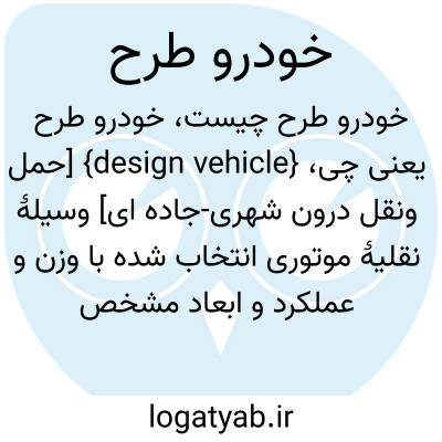 {design vehicle} [حمل ونقل درون شهری-جاده ای] وسیلۀ نقلیۀ موتوری انتخاب شده با وزن و عملکرد و ابعاد مشخص که از آن در طراحی آزادراه ها استفاده می شود