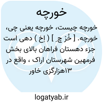 خورچه. [ خُرْ چ ِ ] ( اِخ ) دهی است جزء دهستان فراهان بالای بخش فرمهین شهرستان اراک، واقع در 13هزارگزی خاور فرمهین. این دهکده کوهستانی و سردسیر و 173 تن سکنه دارد. آب آن از قنات و محصول آن غلات و بنشن و پنبه و ارزن و صیفی و شغل اهالی زراعت و گله داری و جاجیم بافی و راه مالرو است و از فرمهین می توان اتومبیل برد. ( از فرهنگ جغرافیایی ایران ج 2 ).