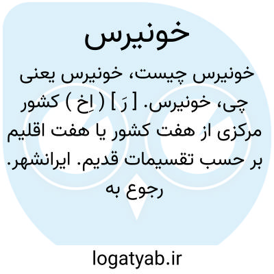 خونیرس. [ رَ ] ( اِخ ) کشور مرکزی از هفت کشور یا هفت اقلیم بر حسب تقسیمات قدیم. ایرانشهر. رجوع به خرده اوستا ص 52 و یسنا ص 48 و 58 و مزدیسنا ص 197 و 450 شود.