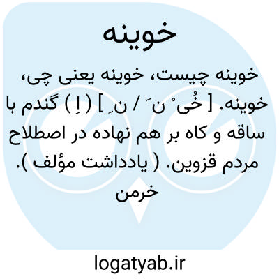 خوینه. [ خُی ْ ن َ / ن ِ ] ( اِ ) گندم با ساقه و کاه بر هم نهاده در اصطلاح مردم قزوین. ( یادداشت مؤلف ). خرمن گندم و جو و دیگر حبوبات با ساقه در تداول مردم قزوین. ( یادداشت مؤلف ).