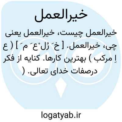 خیرالعمل. [ خ َ رُل ْع َ م َ ] ( ع اِ مرکب ) بهترین کارها. کنایه از فکر درصفات خدای تعالی. ( شرفنامه منیری ) ( از آنندراج ). || ذکر جلی و خفی با هشت رکن. ( آنندراج ).