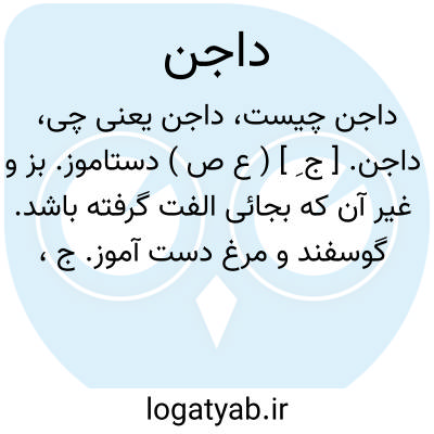داجن. [ ج ِ ] ( ع ص ) دستاموز. بز و غیر آن که بجائی الفت گرفته باشد. گوسفند و مرغ دست آموز. ج، دَواجِن. ( مهذب الاسماء ): جمل داجن؛ شتر آبکش. ( منتهی الارب ). شاة داجن؛ گوسفند انس گرفته. ( منتهی الارب ). ج، دَواجِن. || مقیم در جایی. ( ناظم الاطباء ).