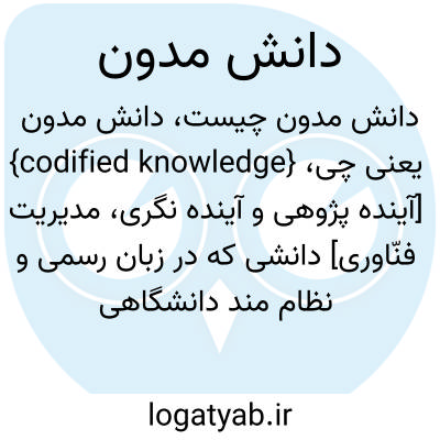 {codified knowledge} [آینده پژوهی و آینده نگری، مدیریت فنّاوری] دانشی که در زبان رسمی و نظام مند دانشگاهی انتقال پذیر است، اما هنوز آن چنان که باید جنبۀ کاربردی پیدا نکرده است