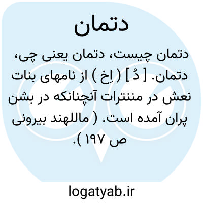 دتمان. [ دُ ] ( اِخ ) از نامهای بنات نعش در مننترات آنچنانکه در بشن پران آمده است. ( ماللهند بیرونی ص 197 ).