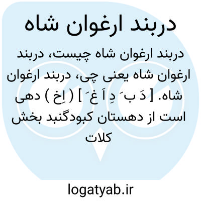 دربند ارغوان شاه. [ دَ ب َ دِ اَ غ َ ] ( اِخ ) دهی است از دهستان کبودگنبد بخش کلات شهرستان دره گز، واقع در 4هزارگزی شمال کبودگنبد با 904 تن سکنه. آب آن از رودخانه و راه آن مالرو است. ( از فرهنگ جغرافیایی ایران ج 9 ).