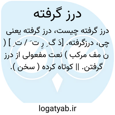 درزگرفته. [دَ گ ِ رِ ت َ / ت ِ ] ( ن مف مرکب ) نعت مفعولی از درز گرفتن. || کوتاه کرده ( سخن ). خلاصه. ملخص.