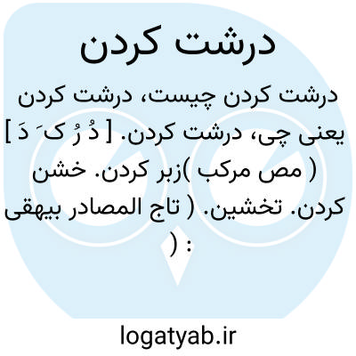 درشت کردن. [ دُ رُ ک َ دَ ] ( مص مرکب )زبر کردن. خشن کردن. تخشین. ( تاج المصادر بیهقی ): اًثفان؛ درشت کردن ِ کار دست را. ( تاج المصادر بیهقی ). || کلان کردن. حجیم کردن. سطبرکردن. تغلیظ. ( المصادر زوزنی ). || سخت کردن. اًعناف. تعنیف. || ناهموار کردن، چون زمین را. توعیر. ( المصادر زوزنی ) ( تاج المصادر بیهقی ): اًقضاض؛ درشت کردن خوابگاه. ( از منتهی الارب ).