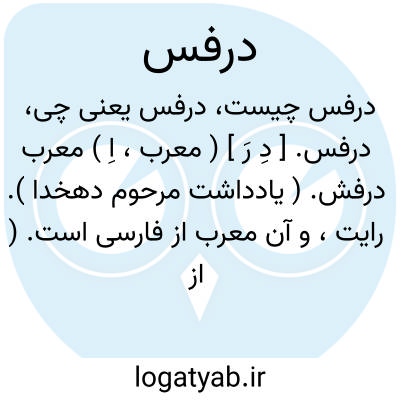 درفس. [ دِ رَ ] ( معرب، اِ ) معرب درفش. ( یادداشت مرحوم دهخدا ). رایت، و آن معرب از فارسی است. ( از المعرب جوالیقی ). نشان بزرگ. ( منتهی الارب ). علم بزرگ. ( از اقرب الموارد ). || جامه ابریشم. ( منتهی الارب ). حریر. ( از اقرب الموارد ). || ( ص ) شتر کلان جثه. ( منتهی الارب ) ( از ذیل اقرب الموارد از لسان ). || مرد فربه و سطبر. ( منتهی الارب ). || اسد و شیر بزرگ. ( از اقرب الموارد ).