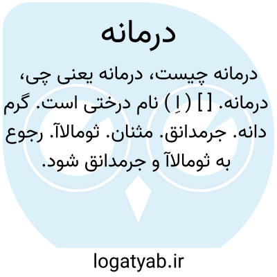 لغت نامه دهخدا درمانه. [ ] ( اِ ) نام درختی است. گرم دانه. جرمدانق. مثنان. ثومالاآ. رجوع به ثومالاآ و جرمدانق شود.