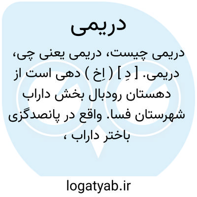 دریمی. [ دِ ] ( اِخ ) دهی است از دهستان رودبال بخش داراب شهرستان فسا. واقع در پانصدگزی باختر داراب، با 192 تن سکنه. آب از رودخانه رودیال وراه آن فرعی است. ( از فرهنگ جغرافیایی ایران ج 7 ).