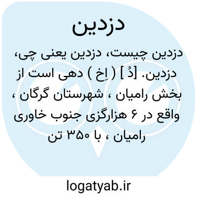 دزدین. [دُ ] ( اِخ ) دهی است از بخش رامیان، شهرستان گرگان، واقع در 6 هزارگزی جنوب خاوری رامیان، با 350 تن سکنه. آب آن از چشمه سار و راه آن مالرو است. به این ده دزدک نیز میگویند. ( از فرهنگ جغرافیایی ایران ج 3 ).