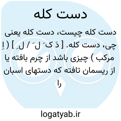 دست کله. [ دَ ک َ ل َ / ل ِ ] ( اِ مرکب ) چیزی باشد از چرم بافته یا از ریسمان تافته که دستهای اسبان را بدان بندند. ( برهان ) ( از جهانگیری ) ( آنندراج ). || شبه و نظیر. ( برهان ) ( آنندراج ). شبیه و نظیر. ( جهانگیری ).