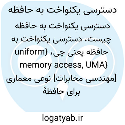 {uniform memory access, UMA} [مهندسی مخابرات] نوعی معماری برای حافظۀ رایانه که در رایانه های موازیِ دارای چند پردازنده و احتمالاً چند تراشۀ حافظه به کار می رود