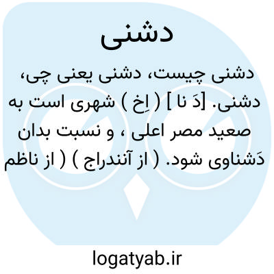 دشنی. [دَ نا ] ( اِخ ) شهری است به صعید مصر اعلی، و نسبت بدان دَشناوی شود. ( از آنندراج ) ( از ناظم الاطباء ).