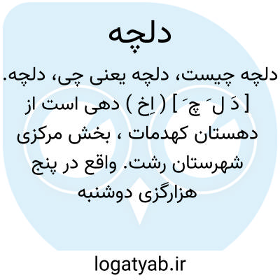 دلچه. [ دَ ل َ چ َ ] ( اِخ ) دهی است از دهستان کهدمات، بخش مرکزی شهرستان رشت. واقع در پنج هزارگزی دوشنبه بازار. آب آن از خمام رود از سفیدرود است. ( از فرهنگ جغرافیایی ایران ج 2 ).