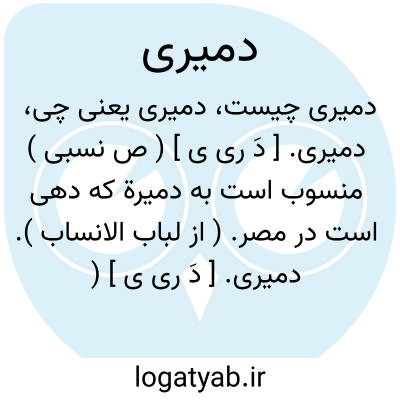 دمیری. [ دَ ری ی ] ( ص نسبی ) منسوب است به دمیرة که دهی است در مصر. ( از لباب الانساب ).