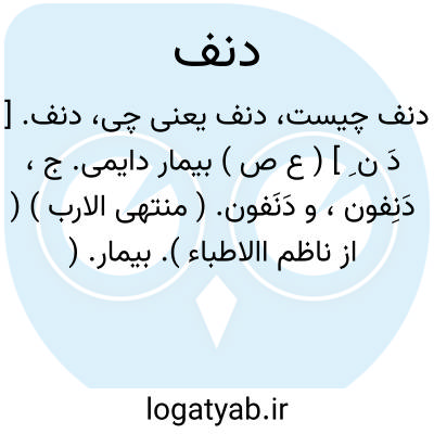 دنف. [ دَ ن ِ ] ( ع ص ) بیمار دایمی. ج، دَنِفون، و دَنَفون. ( منتهی الارب ) ( از ناظم االاطباء ). بیمار. ( مهذب الاسماء ).
