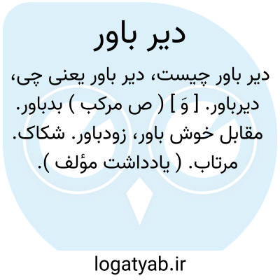 دیرباور. [ وَ ] ( ص مرکب ) بدباور. مقابل خوش باور، زودباور. شکاک. مرتاب. ( یادداشت مؤلف ).