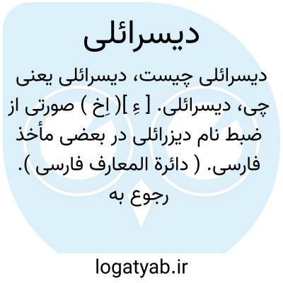 دیسرائلی. [ ءِ ]( اِخ ) صورتی از ضبط نام دیزرائلی در بعضی مأخذ فارسی. ( دائرة المعارف فارسی ). رجوع به دیزرائلی شود.
