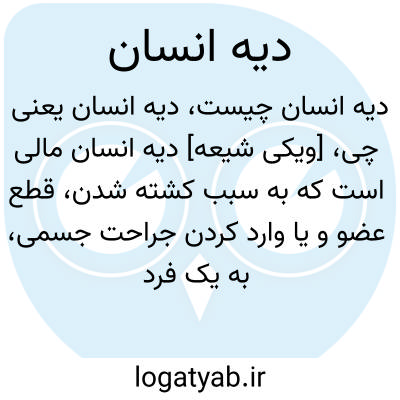 [ویکی شیعه] دیه انسان مالی است که به سبب کشته شدن، قطع عضو و یا وارد کردن جراحت جسمی، به یک فرد یا ورثه او تعلق می گیرد. احکام دیه در بخش دیات کتاب های فقهی آمده است. مقدار دیه آسیب های مختلف در منابع دین اسلام بیان شده است. در مواردی که مقدار معینی به عنوان دیه تعیین نشده، مالی به عنوان اَرش به آسیب دیده پرداخت می شود. میزان دیه در برخی شرایط مانند وقوع جنایت در حرم مکی و ماه های حرام افزایش می یابد که در اصطلاح فقهی به آن تغلیظ دیه می گویند.