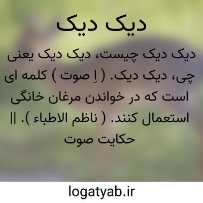 دیک دیک. ( اِ صوت ) کلمه ای است که در خواندن مرغان خانگی استعمال کنند. ( ناظم الاطباء ). || حکایت صوت به هم خوردن دندانها یا تصور بهم خوردن استخوانهای بدن از سرما.